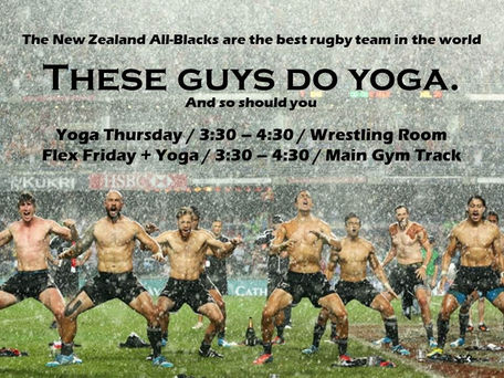 While working at FGHS, I created another ad campaign to promote a weekly fitness club I started, which included yoga. To dispel any notions that yoga is 'soft,' I used world-class athletes who are known to practice it.